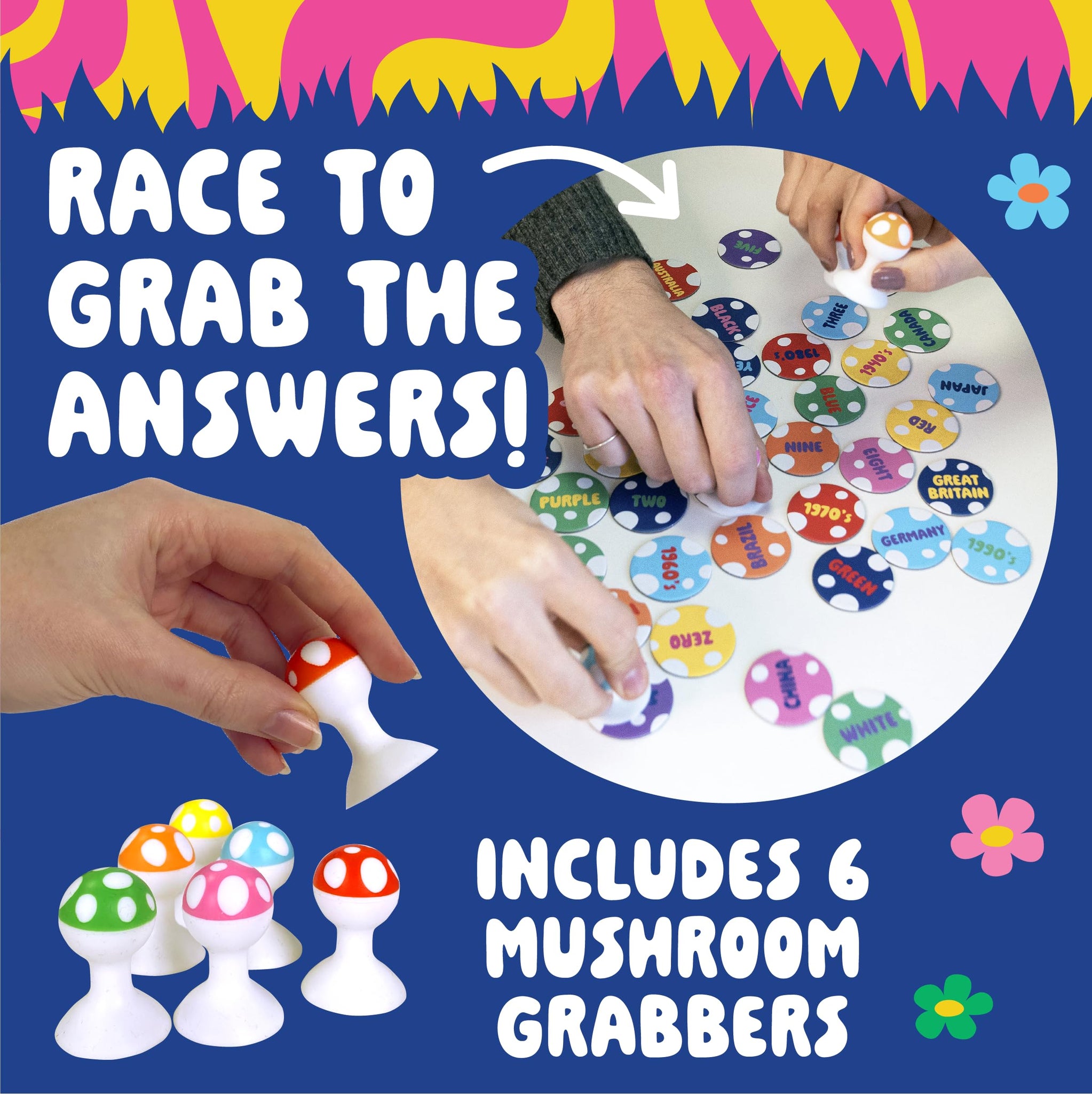 - IT’S ALL ABOUT SPEED, NOT KNOWLEDGE - Use your Mushroom Grabber to pick up answer tokens in this fast-paced game of skill and knowledge. It's not just what you know, but how fast you can grab the answer that counts, making it the perfect experience for all players!