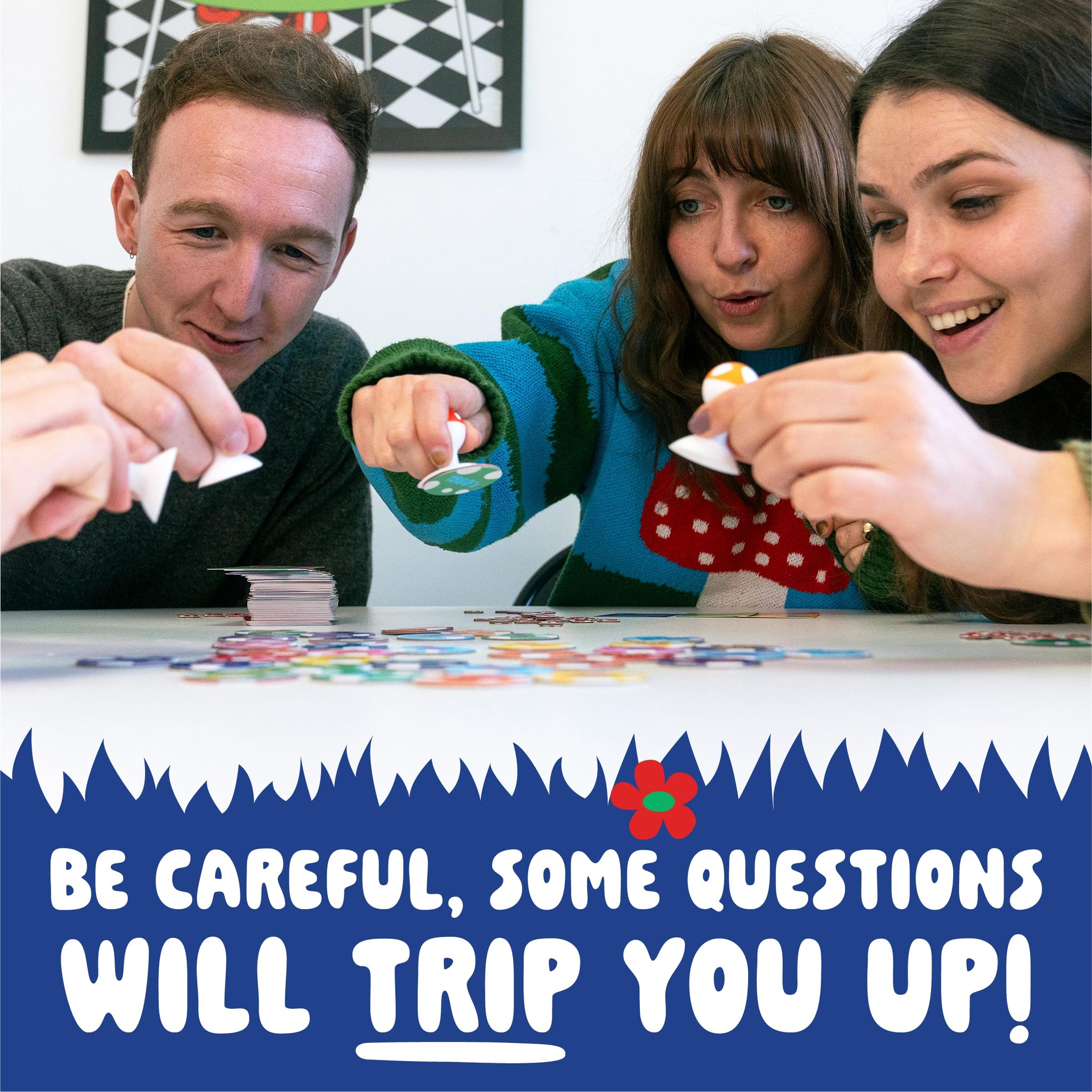 - QUICK BUT CAUTIOUS - In Trippy Trivia, speed is key, but don't let your guard down—this game is full of twists designed to trip you up! It’s the perfect recipe for laughter with your family, where the fastest grab isn’t always the right grab!